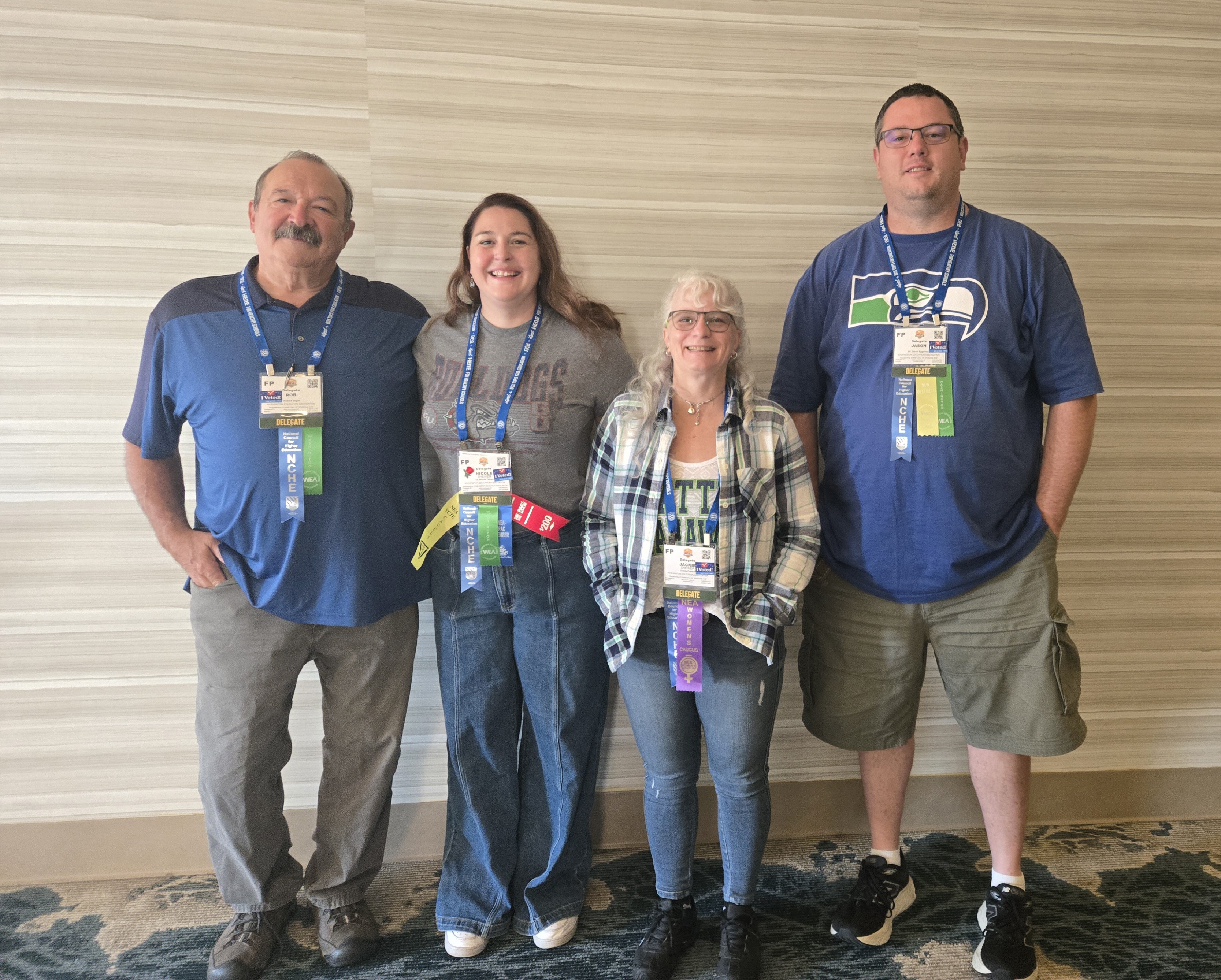 From July 2 to July 6, your local AHE delegates (Rob Vogel, Jackie Franklin, and Jason Eggerman), along with SFCC adjunct Nicole Talbert who attended as an at large state delegate, joined around 7,000 other education professionals in Portland, OR at the National Education Association’s Representative Assembly (“NEA RA”). They represented our local CCS-AHE alongside 305 other educators from the Washington delegation. Over the course of several days, they voted on amendments, resolutions, and new business items brought to the convention floor. They also voted alongside 7,000 other delegates to help elect new members for the NEA Executive Committee. If you have questions about the NEA RA, feel free to connect with one of our delegates.